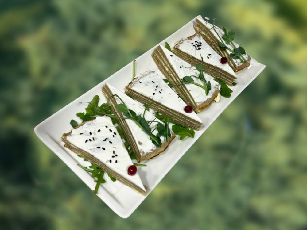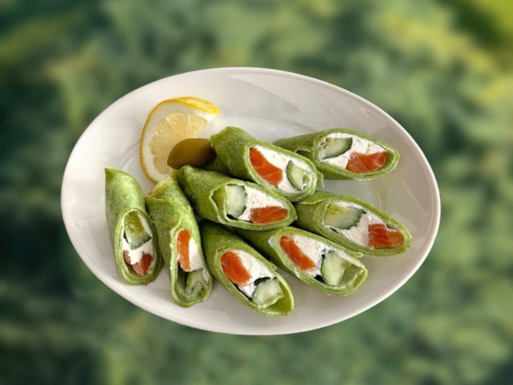 Млинці зі шпинатом, сьомгою та верш. сиром 1/250