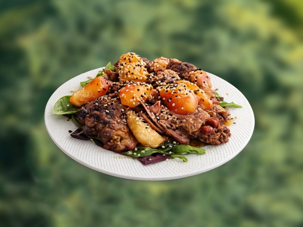 Салат "Теплий салат із вирізки зі свинини" 1/250